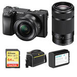 Alpha a6300 Mirrorless Digital Camera with 16-50mm and 55-210mm Lenses and Accessory Kit (Black) 27,175 Points Comprising everything needed to begin shooting, the black Sony Alpha a6300 Mirrorless Digital Camera with 16-50mm and 55-210mm Lenses and Accessory Kit from B&H bundles the versatile mirrorless camera, standard zoom lens, and telephoto zoom lens with a memory card, a protective camera bag, and a spare rechargeable lithium-ion battery. ... Item View » |