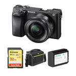 Alpha a6300 Mirrorless Digital Camera with 16-50mm Lens and Accessory Kit (Black) 23,330 Points Comprising the essentials needed to begin shooting, the black Sony Alpha a6300 Mirrorless Digital Camera with 16-50mm Lens and Accessory Kit from B&H bundles the versatile camera body and standard zoom lens with a memory card, a protective camera bag, and a spare rechargeable lithium-ion battery. ... Item View » |