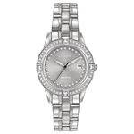 Womens Silhouette Diamond Eco-Drive Watch Gray Dial 4,612 Points Silver-tone stainless steel braceletGray dial with Swarovski diamonds lined around outer rimEco-Drive technology â runs on light never needs a batterySwarovski diamonds set along bezelDate window3 Hands: Hour Minute and SecondsSpherical crystal windowFold over clasp with push button closureCase diameter: 29mmSplash resistant5-Year manufacturer limited warranty ... Item View » |