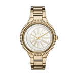 Ladies Taryn Crystal Gold-Tone Watch Mother-of-Pearl Dial 4,287 Points Sophisticated design with an oversized silhouette and dazzling finishesGold-tone stainless steel h-link braceletOff-centered Mother-of-Pearl dial with gold-tone accents and Roman numeralsGold-tone three hands and crystal hour markersGold-tone stainless steel bezel is fully paved with stunning crystal stonesQuartz movementPush-button foldover deployant closureCase size: 40mmWater resistant to 50 M2-Year manuf ... Item View » |