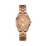 Ladies Crystal Rose Gold-Tone Stainless Steel Bracelet Watch Rose Gold Dial 2,299 Points Perfectly petite and romantic with 48 individually hand-set crystalsRose Gold-tone stainless steel 3-link braceletRose Gold-tone dial with Arabic numerals and three handsRose Gold bezel is fully lined with hand-set crystalsDay of the month window at 3 positionBlack minute markers along dial rim and âCaravelleâ logoRose Gold-tone stainless steel caseDouble press button fold-over closureCase diameter: 28mm ... Item View » |