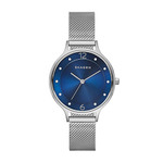 Womens Anita Blue Sunburst Watch Mesh Bracelet 2,299 Points Silver-tone stainless steel mesh braceletBlue sunburst dial with crystal indices and silver-tone hands 6 and 12 Position Arabic numeralsSilver-tone fold over clasp with safety closureMineral crystal windowQuartz movementSilver-tone stainless steel caseBand width: 12mmCase diameter: 30mmWater resistant to 30 MManufacturer limited lifetime warranty ... Item View » |