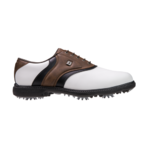 FootJoy Originals Golf Shoe Size: 12 1,798 Points FJ Originals men's golf shoes provide great traction and easily maintain their beauty round after round. The DuraMax rubber outsole is a proprietary compound that provides turf gripping performance and durability. EVA Fit-Beds provide lightweight cushioning underfoot, and it does not take a set, so the cushioning will remain the same for the life of the shoe. The easy care synthetic upper offers outstanding 1 year waterproof comfort, breathability, and durability.Specifications ... Item View » |