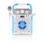 HD Karaoke System with LED Disco Lights White 2,012 Points Digital karaoke player with LED disco lightsLights are featured around speaker and onboard controlsLights synchronize to the beat of the music playingRecord your singing to USBBluetooth technology to wirelessly stream songs to the machineKaraoke app offers free download songsSearch for songs by title artist and moreCreate personal playlistsEcho controlSD Card slot (up to 32GB)Resting tablet cradle ... Item View » |
