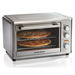 Hamilton Beach Convection Rotisserie Toaster Ovens include cooking timer with an auto shutoff function and come complete with two oven racks and bake pans a broil grid a rotisserie skewer and a rotisserie lifter. The rotisserie toaster oven is made for simple cleanup too with an interior that is easy to clean with a damp cloth.