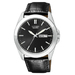 Mens Eco-Drive Black Leather Strap Watch Silver Dial