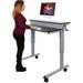 The 48" Electric Standing Desk from Luxor is an adjustable, dark walnut topped desk with a silver frame that can be used for desktop, laptop, or tablet computing. You can quickly adjust its height by simply clicking the built-in up and down buttons. For mobility, this desk has four wheels with two locking brakes. All hardware and tools required for assembly are included.