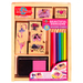 Have fun designing crazy colorful words and sentences with the funky and fun T.S. Shure Artsy Alphabet Wooden Stamp Set! Set includes rubber stamps, ink pad, 8 colored pencils, and comes packed in a pine storage box with an acrylic sliding lid. Age - 4 and up.